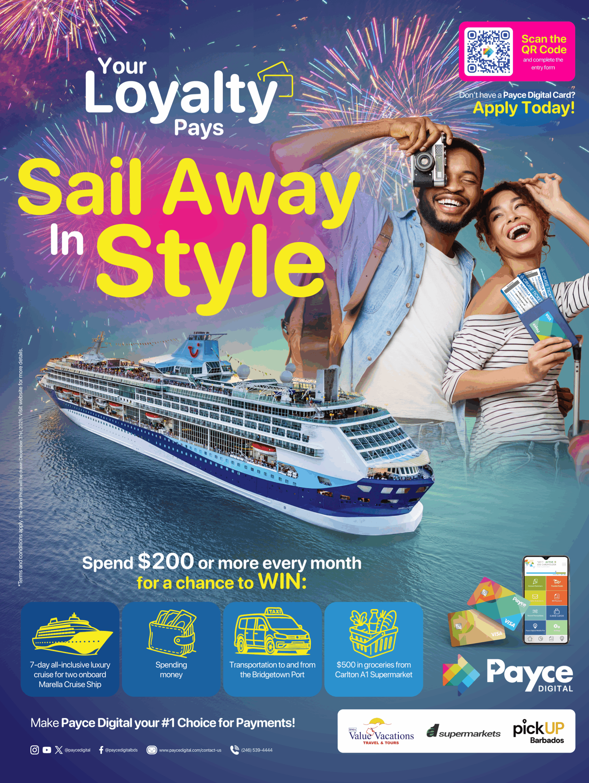 Q4 – Grand Prize: A 7-day all-inclusive luxury cruise for 2 on board a Marella cruise ship boarding in and returning to Barbados, Spending money, Transportation to and from the Bridgetown Port PLUS $500 in groceries from A1 Supermarket.